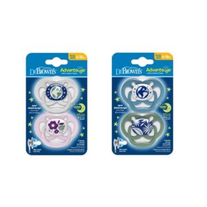 Soothe your newborn—day or night—with the Advantage Pacifiers| Glow in the Dark| Stage 1|(2 Pack). Specially designed for babies aged 0 to 6 months, these pacifiers provide gentle comfort while supporting healthy oral development.