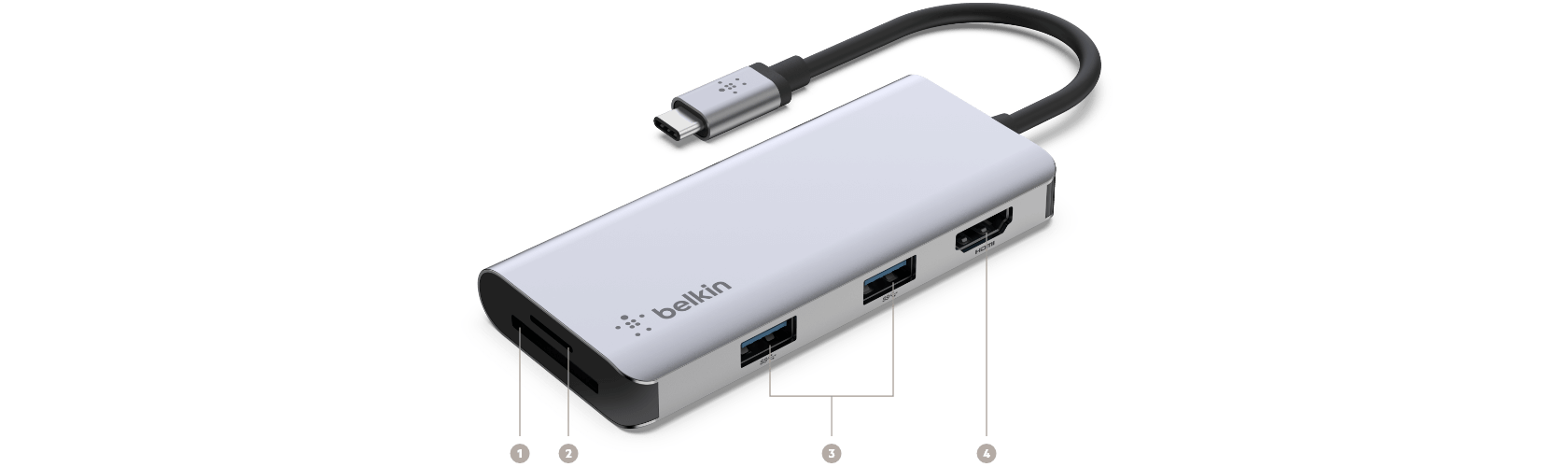 Belkin Adapter – USB-C 5-in1 HDMI + SD Card + MicroSD + 2 USB (AVC007btSGY)