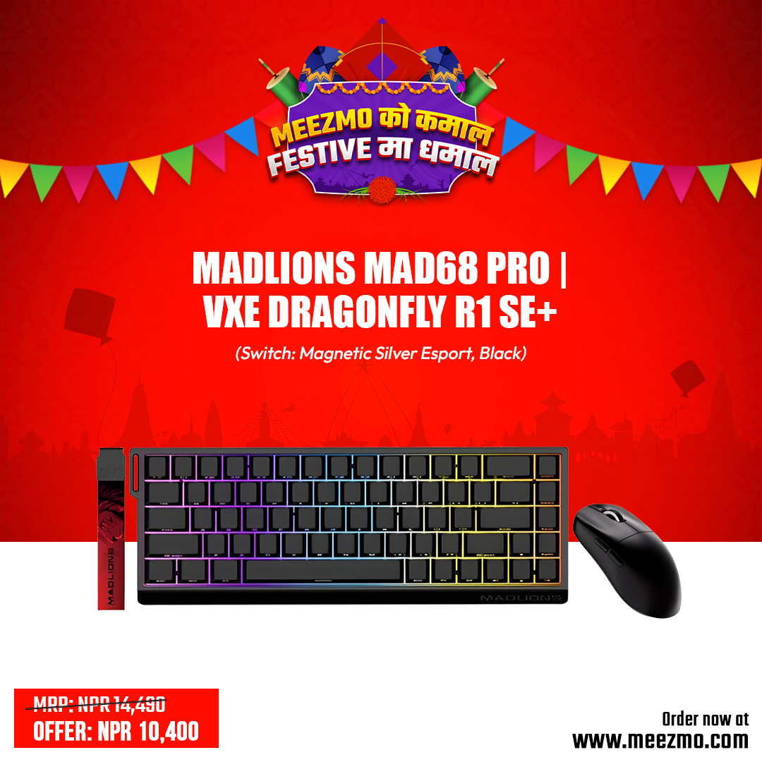 The MAD68 Pro offers cutting-edge Hall Effect magnetic silver esport switches with adjustable actuation, while the VXE Dragonfly R1 SE+ delivers elite tracking and feather-light handling with its advanced sensor and ultralight body. Together, they create a seamless, lag-free experience that keeps you locked in and ahead of the competition.
