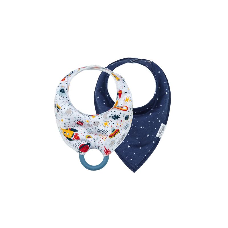 Dr. Brown’s Super Soft Bandana Bib with Removable Teether – Rocket Ships/Stars
