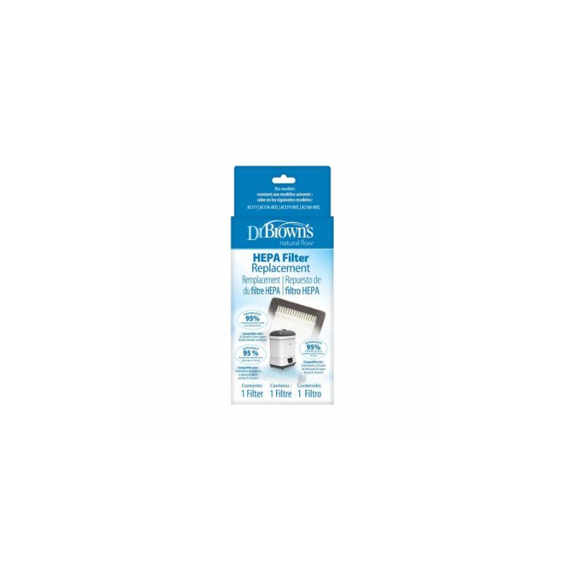 Maintain a hygienic and healthy environment for your baby with the Dr. Brown’s HEPA Replacement Filter(1-Pack), made exclusively for use with Dr. Brown’s Sterilizer with Dryer. Over time, HEPA filters can become saturated with particles and lose their effectiveness. Replacing your filter regularly ensures your sterilizer continues to deliver powerful, clean performance.