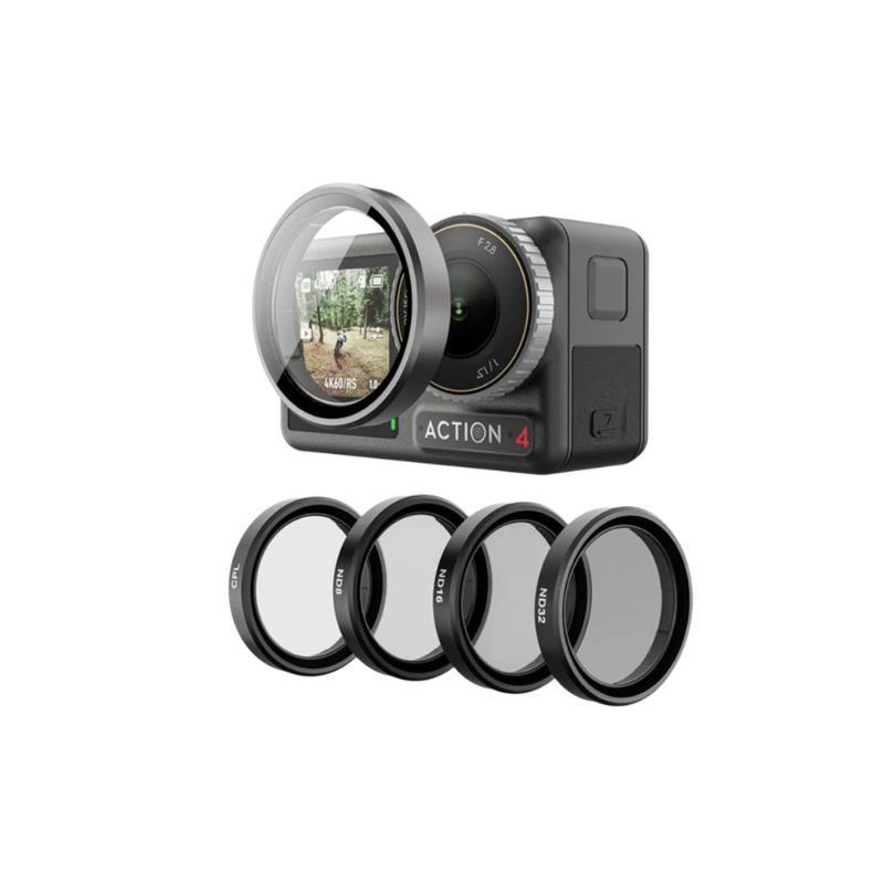 Enhance your adventure footage with the TELESIN ND & CPL Lens Filter Set, specially designed for DJI Osmo Action 3, 4, and 5 Pro cameras. This 4-pack filter kit includes CPL, ND8, ND16, and ND32 filters, crafted with durable aluminum alloy frames and precision-fit design for high-performance image enhancement in any lighting condition.
