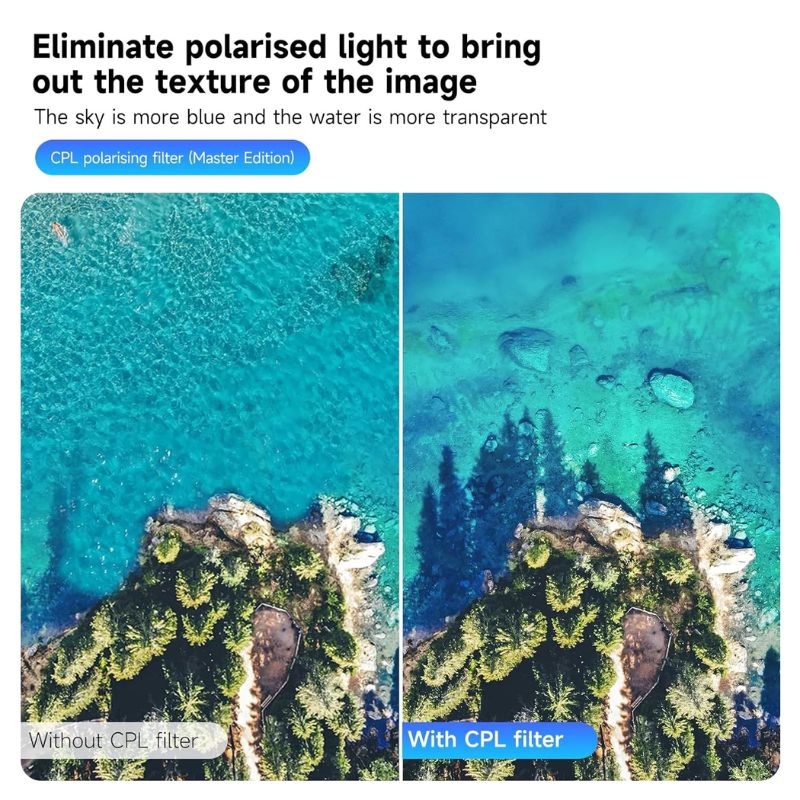 - CPL (Circular Polarizer): Reduces reflections from glass, water, and non-metallic surfaces while enhancing color and contrast.