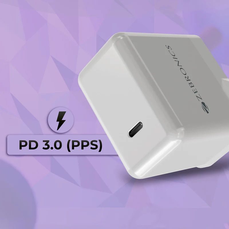Charge efficiently with the Zebronics MA204 Type-C Mobile Charger, offering up to 45W rapid charging and compatibility with mobiles and tablets. Equipped with PD 3.0 (PPS) technology, it delivers optimized power outputs: 5V/9V/12V/15V/20V with up to 3A current.Key features include built-in protection against overcurrent and short circuits, auto self-recovery, and less ripple for safer and reliable charging. Its wide input range (100-250VAC) and high efficiency make it ideal for global use. Designed with a sleek glossy finish, this charger is a perfect blend of performance and style.